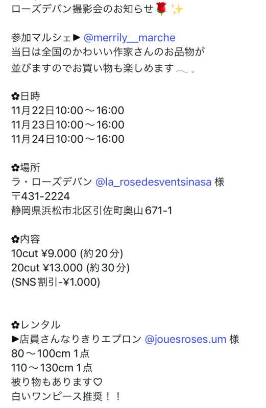 ●ラローズデバンのお庭で海外風photo撮影会同時開催